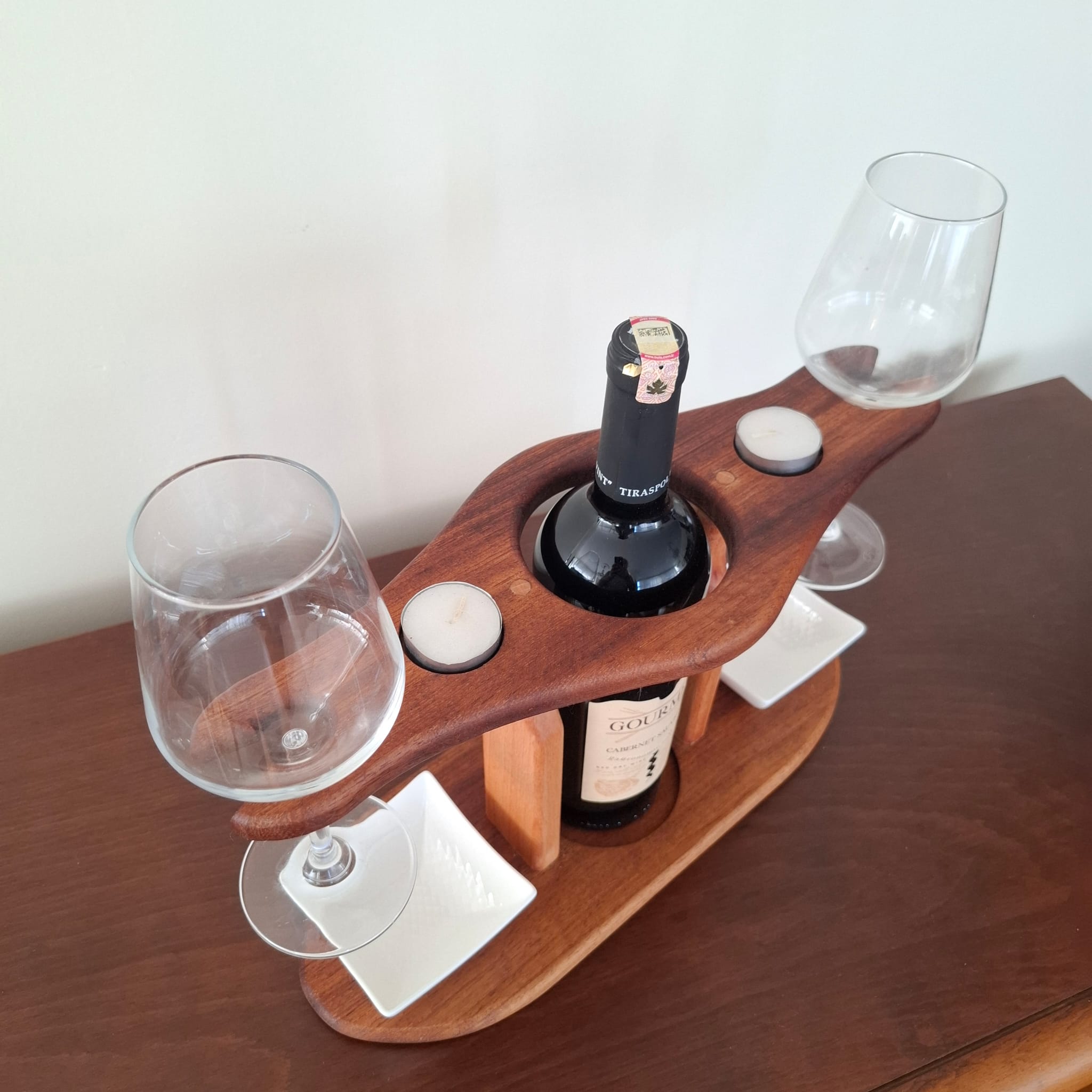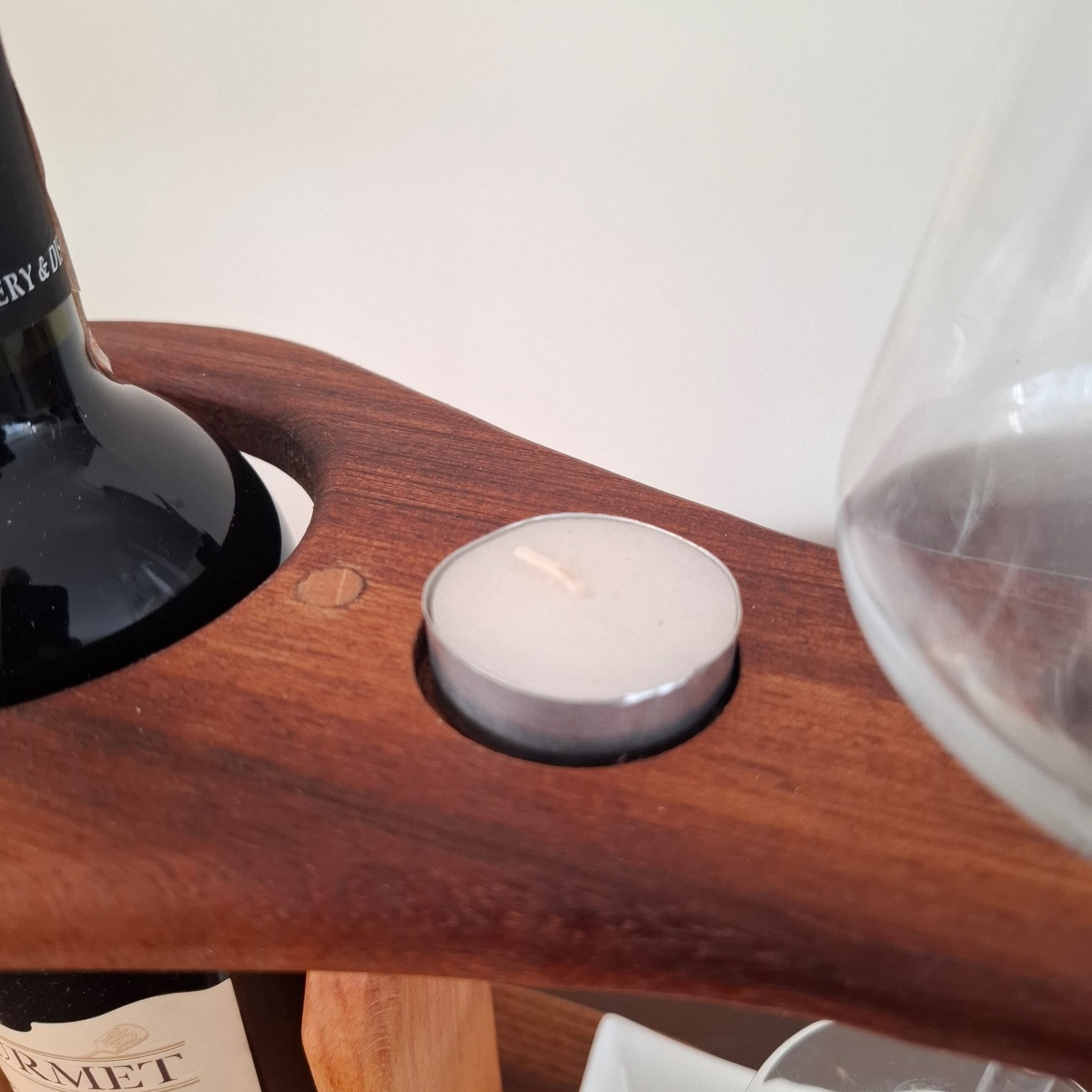 Gürgen ve iroko ağacından yapılmış ve balmumu ile cılananmıştır. Çerezlikler Madam Coco ürünüdür ve dahildir. Tealight boyunda mumlar kullanilabilir. Bardaklar ve Şarap dahil değildir.